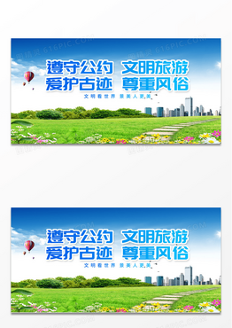 简约文明城市旅游爱护古迹遵守风俗展板背景文明旅游展板