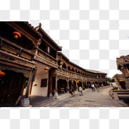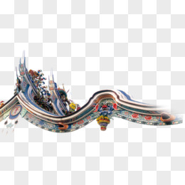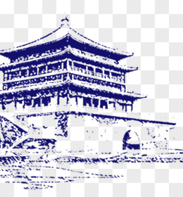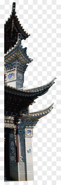 一组手绘插画中国风古代建筑瓦片屋檐套图合集元素四