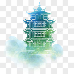 一组手绘插画中国风古代建筑瓦片屋檐套图合集元素一