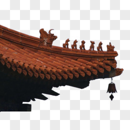 一组手绘插画中国风古代建筑瓦片屋檐套图合集元素六