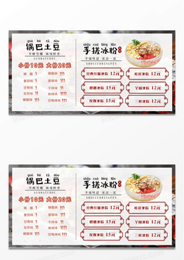 棕色大气锅巴土豆手搓冰粉菜单展板设计