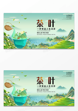 绿色国潮唯美中国风茶叶茶道茶文化新茶上市展板设计