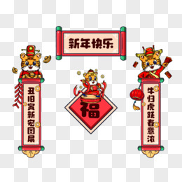 国潮新年牛年牛气冲天创意牛牛边框元素