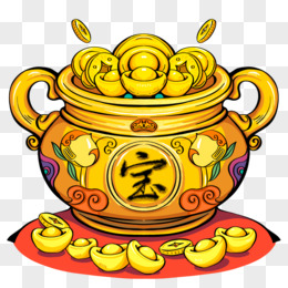 手绘卡通国潮小牛抱鲤鱼场景素材