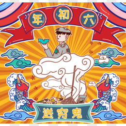创意卡通国潮喜庆大年初六元素