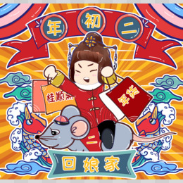创意卡通国潮喜庆大年初二元素