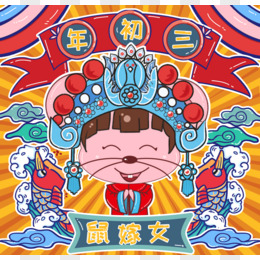 创意卡通国潮喜庆大年初三元素