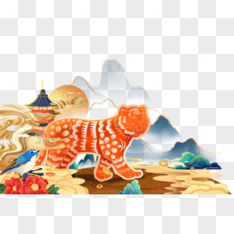 虎年山水创意合成元素
