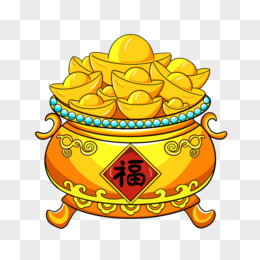 国潮风粗描边聚宝盆手绘元素