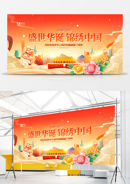 创意国潮风插画盛世中国建国73周年国庆节展板设计
