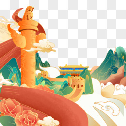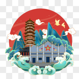 手绘矢量国潮微景观党建代表性建筑组合素材