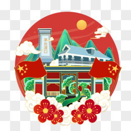 手绘国朝微景观党建代表建筑长城天坛嘉兴红船素材