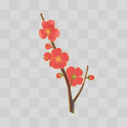 剪纸风国潮红色金边花朵免抠装饰矢量元素