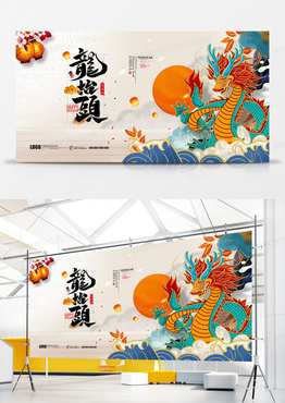 二月龙抬头可爱儿童舞狮节日习俗卡通元素
