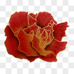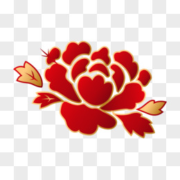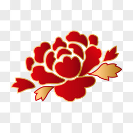 国潮风红牡丹手绘描边花朵植物装饰元素