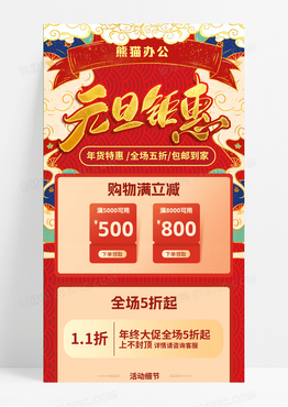 红色喜庆背景国潮风国潮元素元旦钜惠新年促销手机海报元旦长图