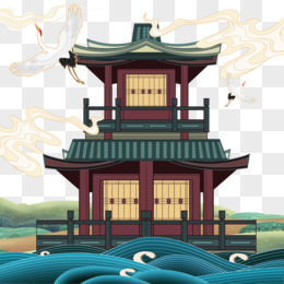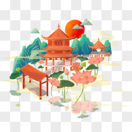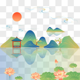 手绘国潮立秋山水仙鹤菊花枫叶元素