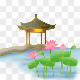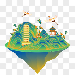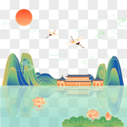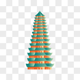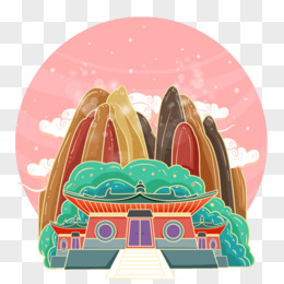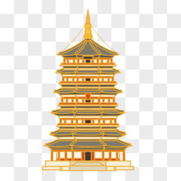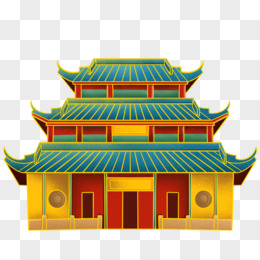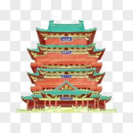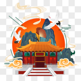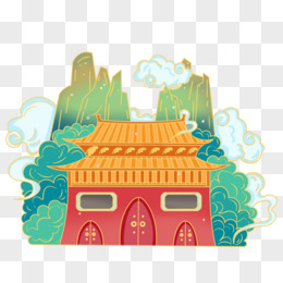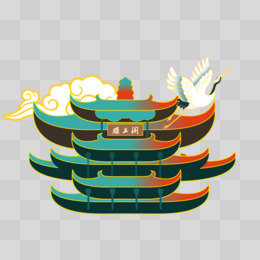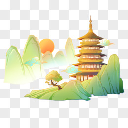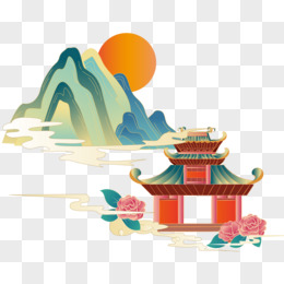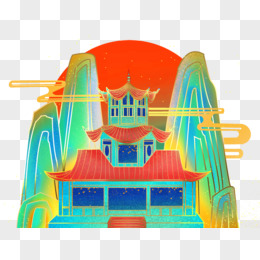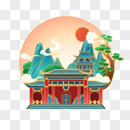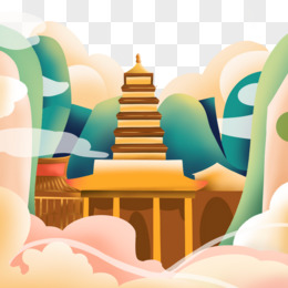 手绘国潮亭台楼阁等古典建筑大唐西市素材
