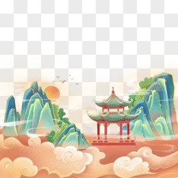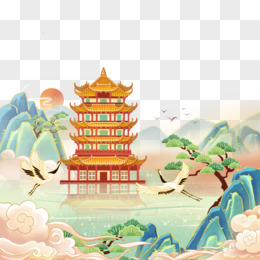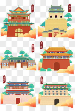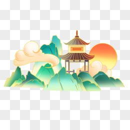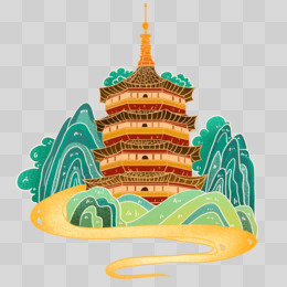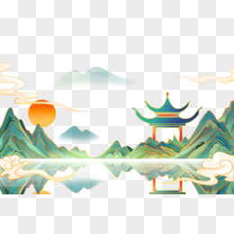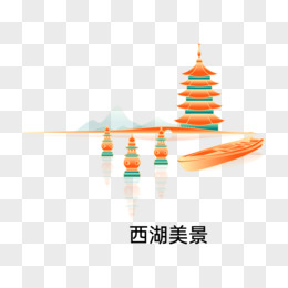 一组矢量国潮杭州地标建筑之西湖美景素材