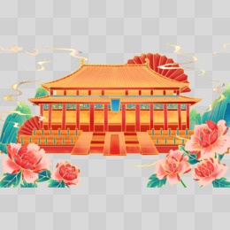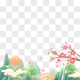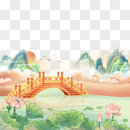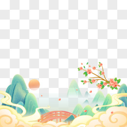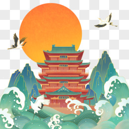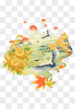 手绘国潮立秋山水仙鹤菊花枫叶元素