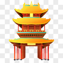 国潮插画牌坊楼建筑免抠元素