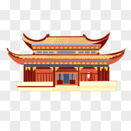 插画风中国风中式门楼建筑免抠素材