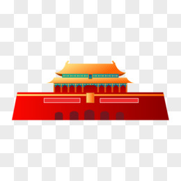 手绘渐变插画风免抠天安门城楼元素素材
