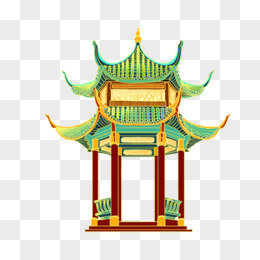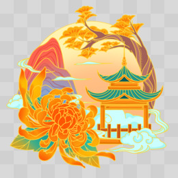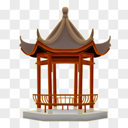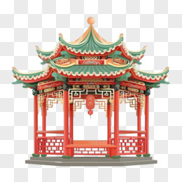 国潮撞色中式凉亭免抠元素