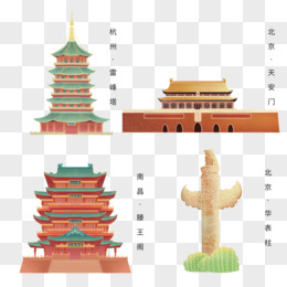 国潮杭州地标性建筑免抠元素
