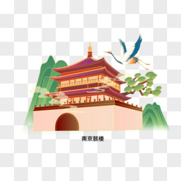 一组中国风文化古代建筑素材南京鼓楼套图合集元素二