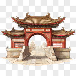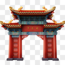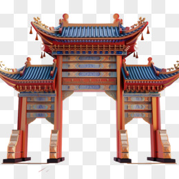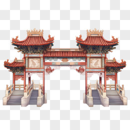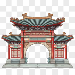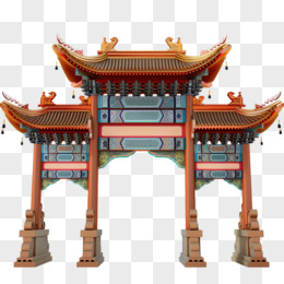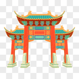 手绘国潮风牌坊牌楼免抠元素