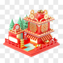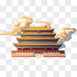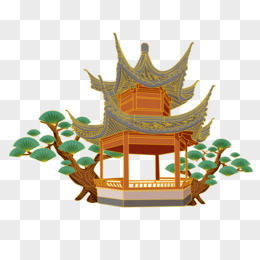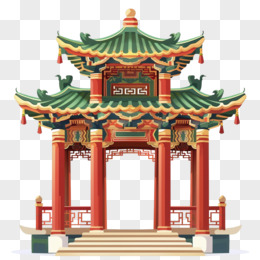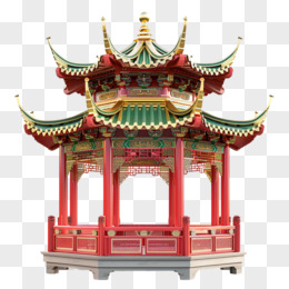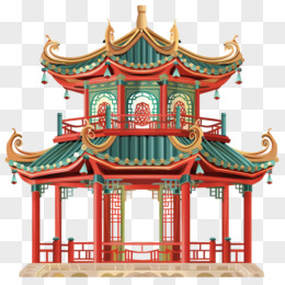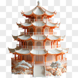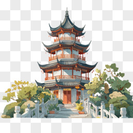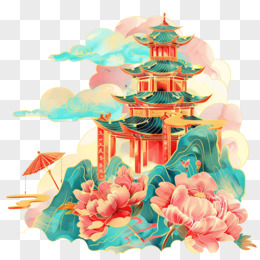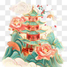 国潮古风纸浮雕风格古代塔楼免抠元素
