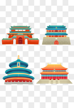 一组国潮风手绘北京建筑天坛鼓楼永定门太庙装饰免抠元素合集
