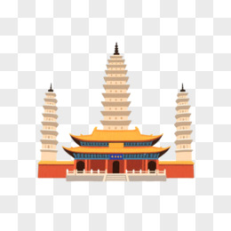 手绘风云南大理崇圣寺三塔建筑免抠元素