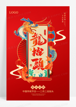 国潮锦鲤卷轴二月二龙抬头传统节日合成元素