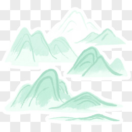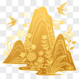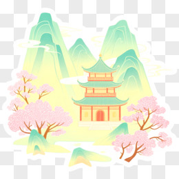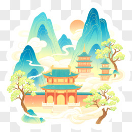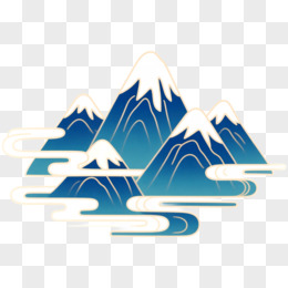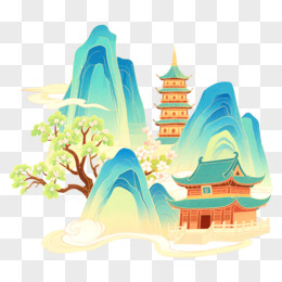 国潮山水画湖泊山脉和丹顶鹤免抠元素
