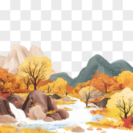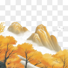 国潮插画秋天黄色山脉和树林风景免抠元素