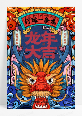 龙年国潮风格新年春节海报