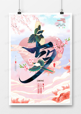 手绘新中式国潮牛郎织女鹊桥相会元素