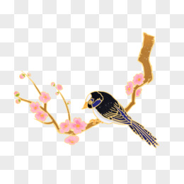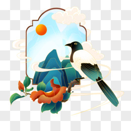 手绘国潮风喜鹊花鸟扇子免抠素材