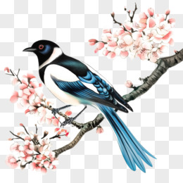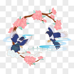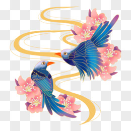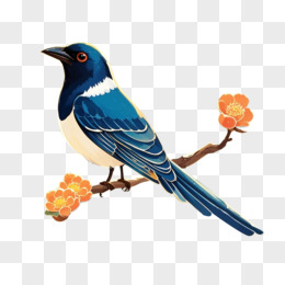 卡通手绘国潮飞翔的喜鹊免抠素材