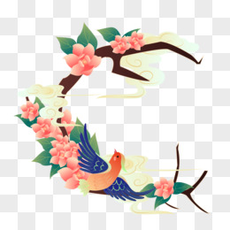 中国风卡通创意山水花鸟元素