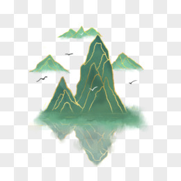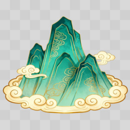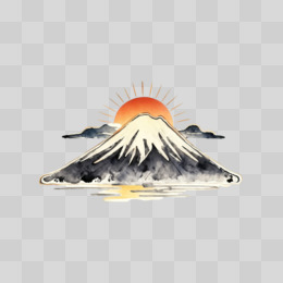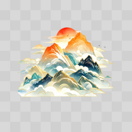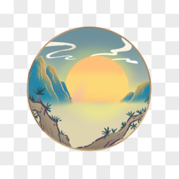 圆形创意山水夕阳云彩国潮金线中国风创意插画