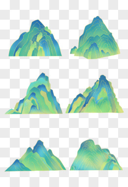 一组矢量国潮风青涩渐变山峰套图系列五元素