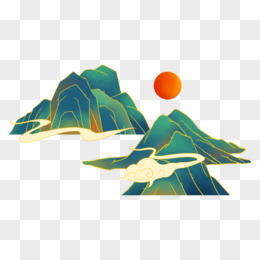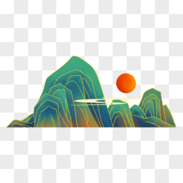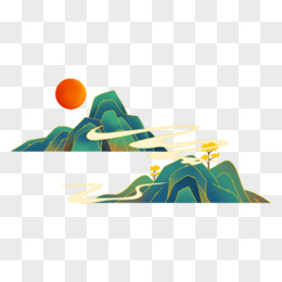 国潮风山川日落免抠元素
