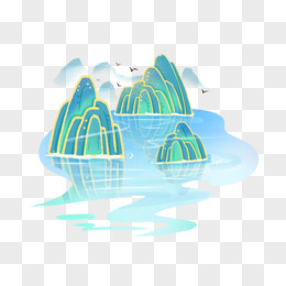 一组卡通中式青绿山水套图合集元素