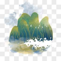手绘中式山峰免扣元素