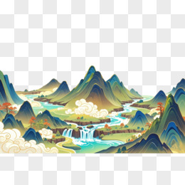 手绘国潮山水有山有水元素