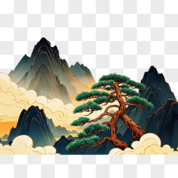 国潮风松树山川免抠元素