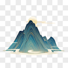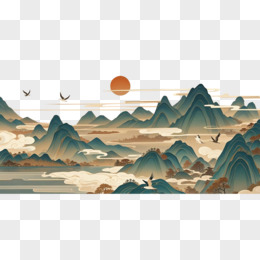 国潮风山川日落免抠元素